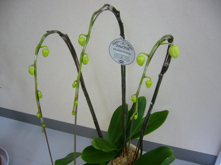 この時にいただいた胡蝶蘭の鉢の2つにつぼみがついたので、経過を見守ることにしました。