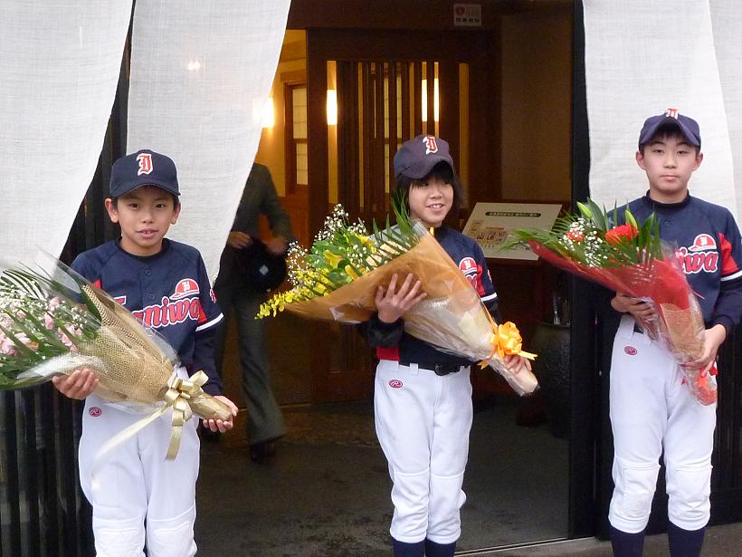 世界の原監督にひと目会いたいと、総本店では地元の野球少年、小学生達も集まりました。