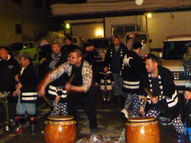 馬口労町の勇ましい男衆が太鼓に合わせて餅つきを披露。つきたての餅とたる酒を振舞っていました。
