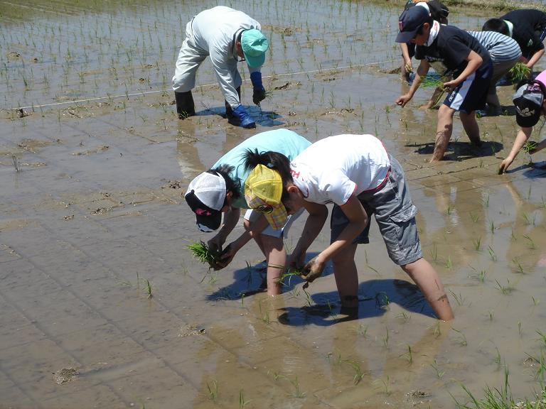 小学校の先生方も一緒にはだしになっての田植え実習、ほほえましくもありました。
