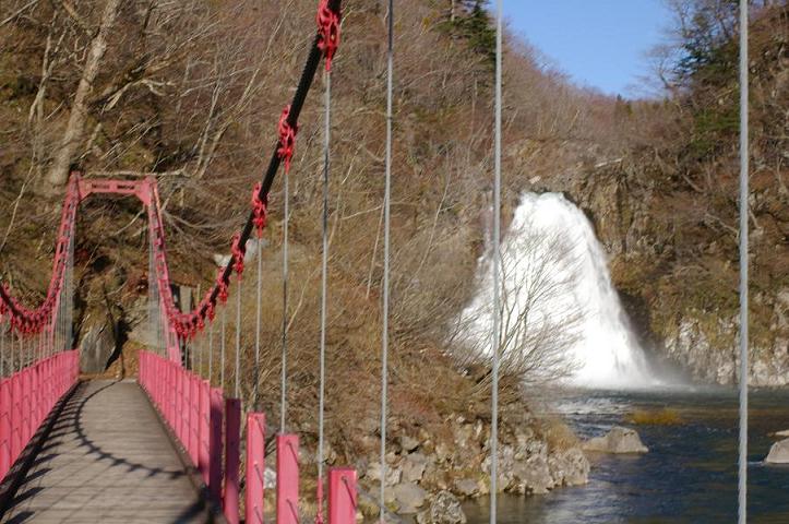 一の滝(13m)、二の滝(2.4m)、三の滝(42m)の3段からなり、総落差は57mを越す大瀑布で「日本の滝100選」にも選ばれています。