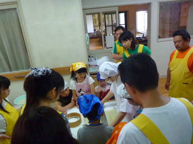 うどん作りは初めてでうどんの生地が粘土みたいというお子様もいらっしゃいました。職人さんの指導を受けて上手にうどんを作っています。