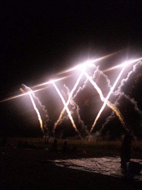 屋台から遠くなってしまう事、近すぎて真上を見上げないといけない点は我慢ですが、花火の全容が見れる特等席でした。