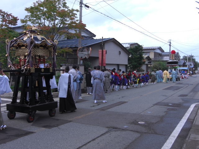稲庭地区にあるこの三嶋神社は三嶋大社を勧請したと伝えられる神社でこの日は約200年前に京都から奉納されたといわれるみこしを担いで練り歩きます。