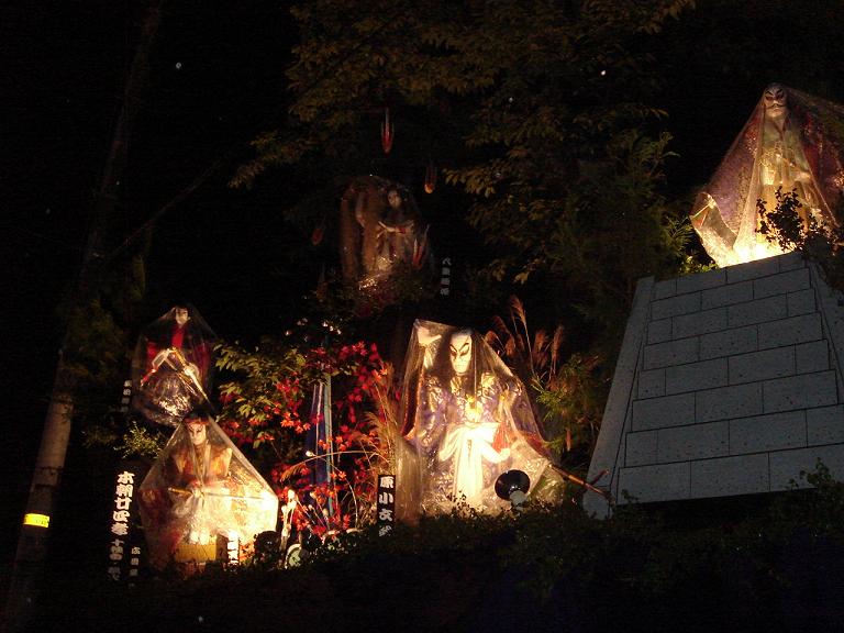 会場5箇所にはトップの画像のような大置山もありますので地図片手に置山めぐりもいかがですか?その途中途中で曳山も見られると思います。各曳山には時代絵巻の様な人形が乗せられています。