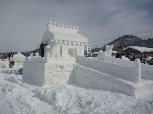 朝に寄ってきましたがまだ会場にお客さんはこれからのようで雪像の微調整など行っていました。