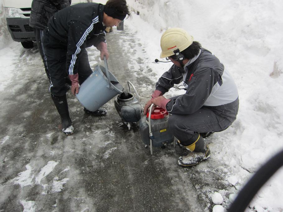 そこで来季も活躍することを願い、私が業者に依頼してグラウンドに消雪剤をまいてもらうことにしました。