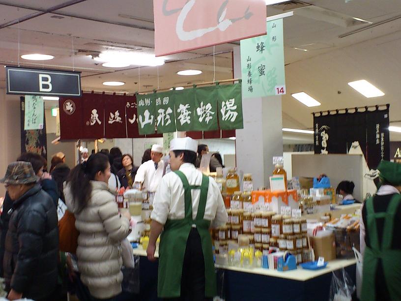 画像は直営店でも使用させていただいている、奥井海生堂さんと、当社のブースのお向かいの、山形養蜂場さんです。