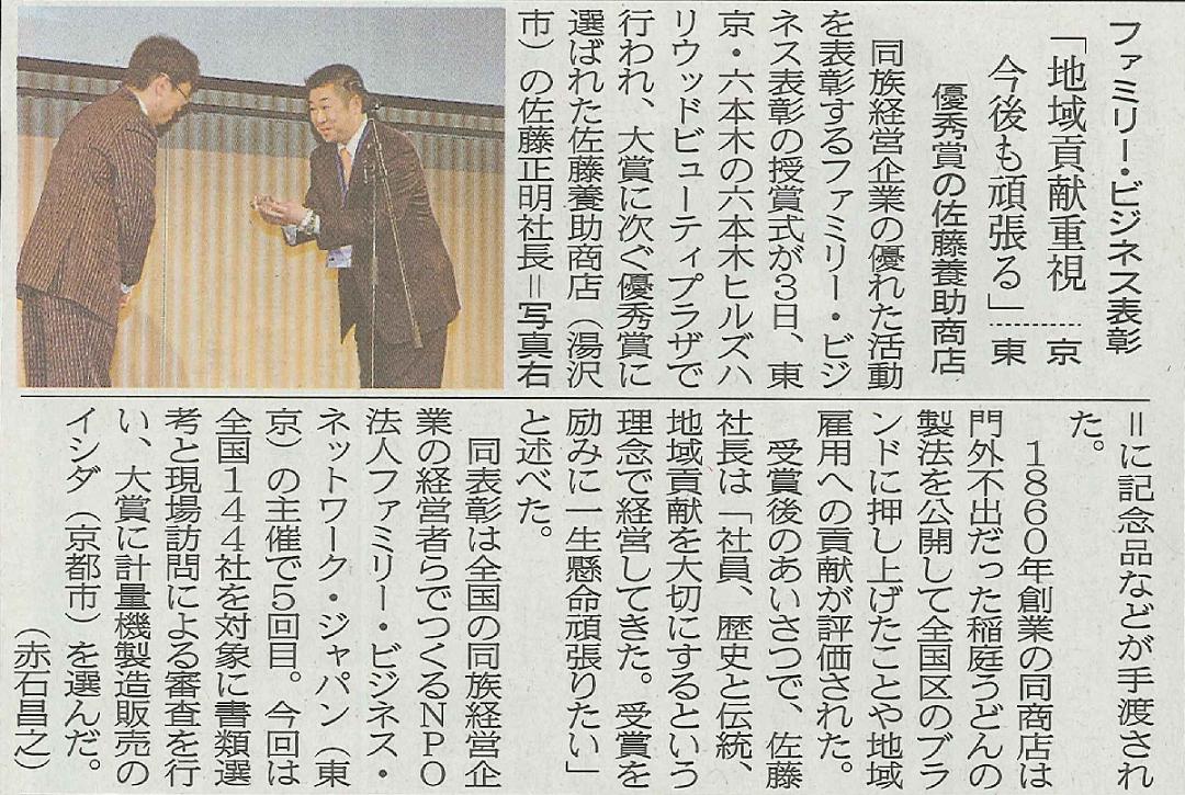 2月7日にここでお知らせしました、ファミリービジネス表彰の授賞式が東京で開催されました。