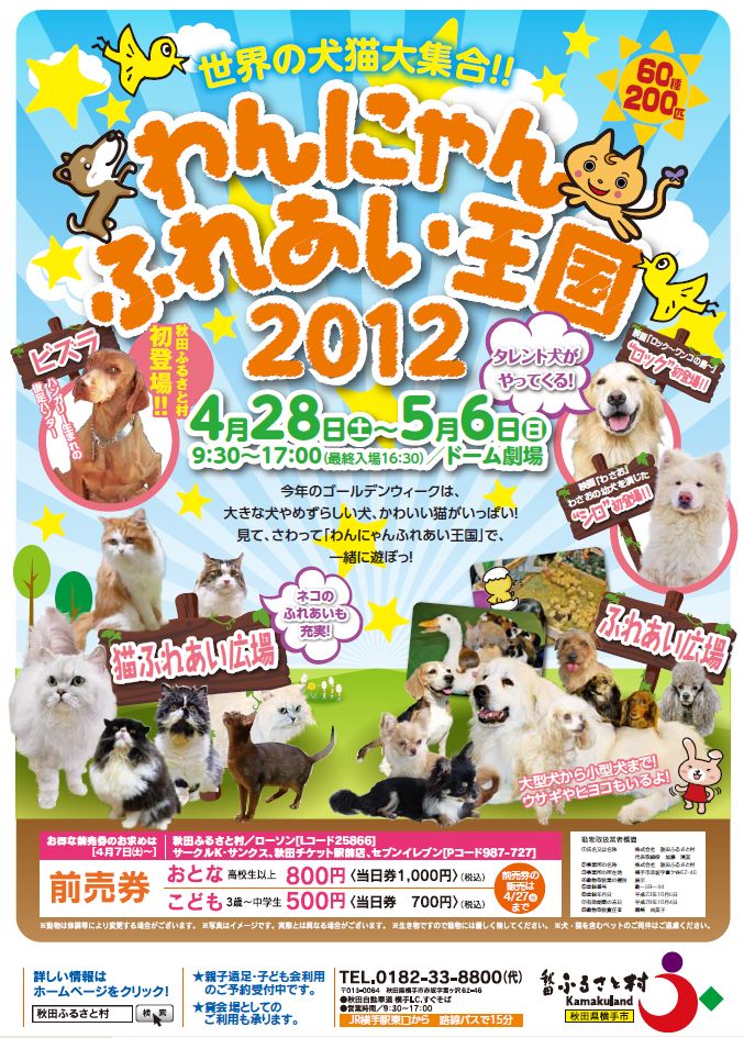 「わんにゃんふれあい王国」は6日まで、秋田ふるさと村内 ドーム劇場にて開催中です。