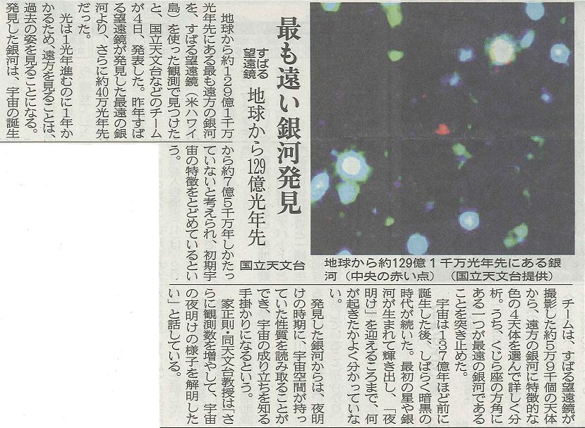 地球から約129億光年先、といわれてもぜんぜんピントきませんが、このような観測データが計算できるようになっている現代の天文学の進歩そのものにも驚いてしまいます。