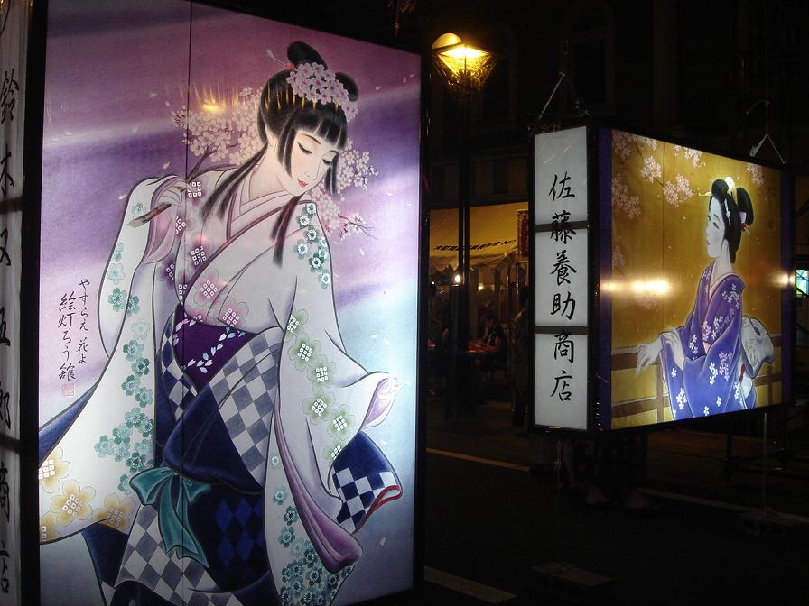 ここの通りの絵どうろうは例年浮世絵美人画の大作が飾られ、絵のタッチが他のものとはひと味違っています。