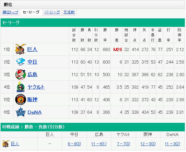 しかも昨日はマジック点灯中、首位の読売ジャイアンツと2位の中日ドラゴンズ。