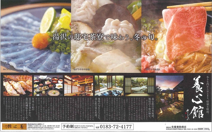 昨日の秋田魁新報に養心館(湯沢市)の記事広告が掲載となりました。