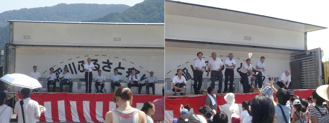 市長の挨拶や、お祭りには欠かせない餅まきも行われ、一気にお祭りムードが高まりました。