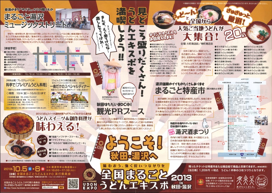 10/5(土)・6(日)全国まるごとうどんEXPOin秋田・湯沢では、人気ご当地うどん大集合のほかにも様々なイベントが開催されます。