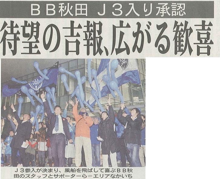 水曜日に地域貢献活動の一環で合同で慰問活動をしてくれたサッカーチーム、ブラウブリッツ秋田がJリーグ理事会においてJ3への参入を承認されました。