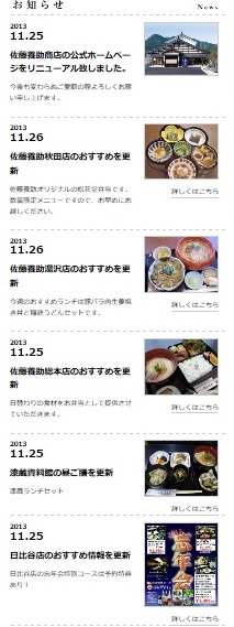 TOPページの表示については、以前は文字による見出しだけでしたが、今回のリニューアルによって、画像とともに各店のおすすめメニューなど各種更新情報を一目でご覧いただけるようになりました。