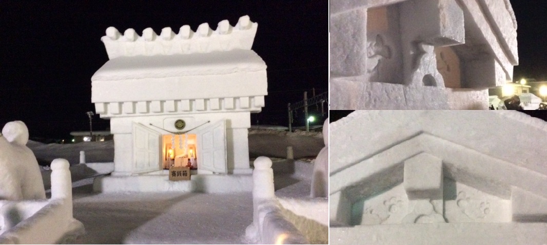 当社で制作したお堂は側面に梅や松などの絵柄を削り、細部にこだわり、湯沢市長賞をいただきました。