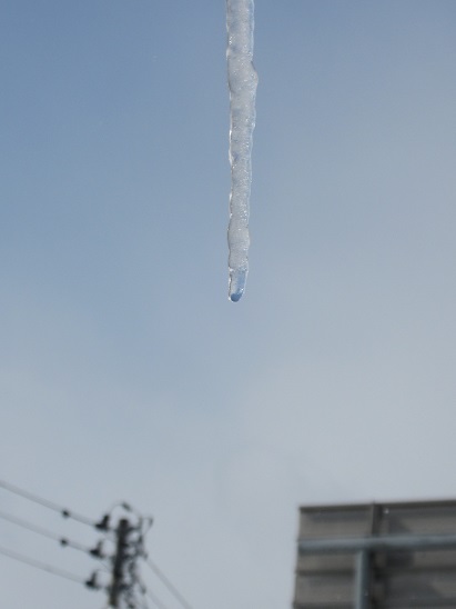 日が当たってつららからしずくもぽたぽた落ちてきています。