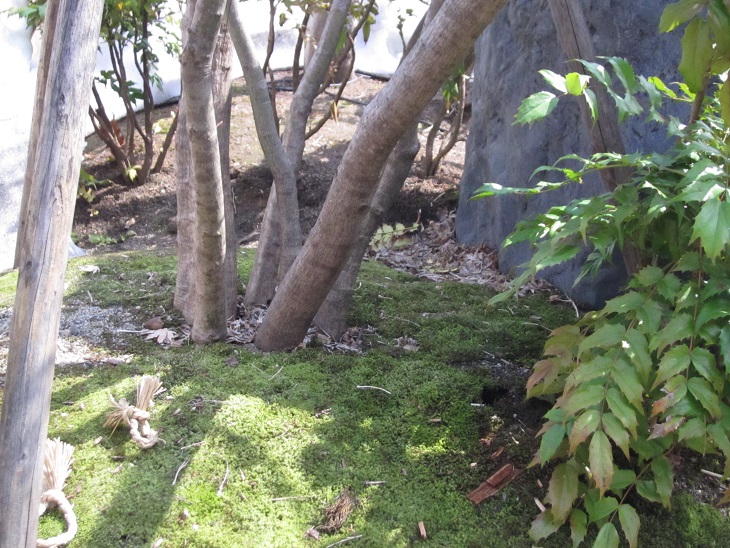 囲いをはずされた植え込みはすでに新緑が青さを増して、モノトーンの世界から一気に春らしくなりました。