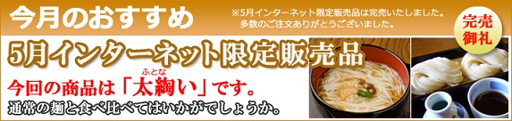 5月のインターネット限定販売『太綯い』のうどんが本日午前で完売いたしました。
