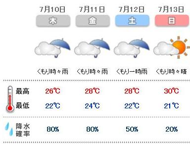 秋田県内は9日以降、梅雨前線の停滞や台風8号の影響で雨の日が続く見込みです。