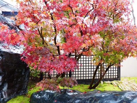 総本店前の「末広の庭」の木々も赤く染まっています。