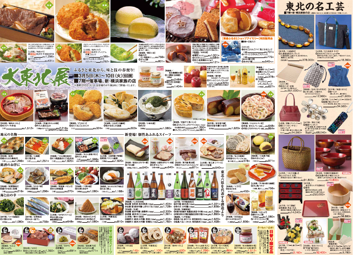 東北各県の海の幸・山の幸、伝統工芸品をお持ちしております。