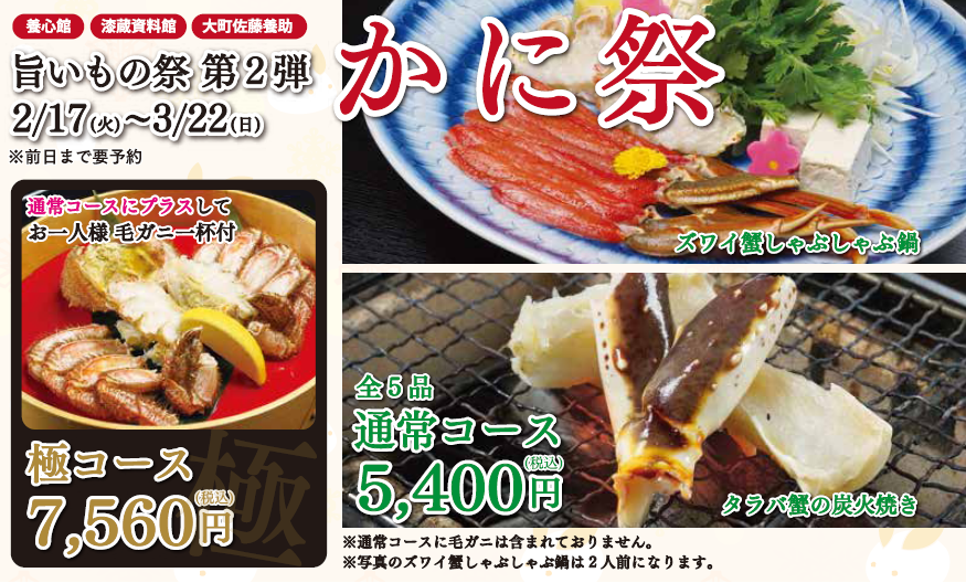 終了まで残りわずかとなりましたので、この機会に蟹づくしのコースを是非ご堪能くださいませ。