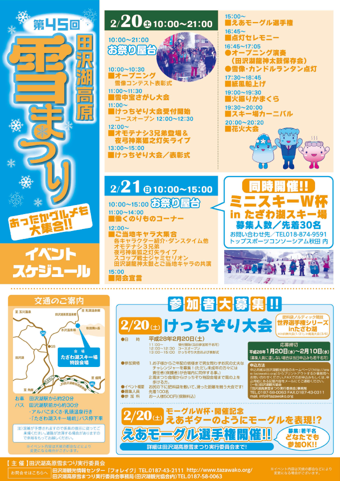 また21日は、ご当地キャラ大集合、ミニスキーW杯inたざわ湖スキー場が行われるなどイベント盛りだくさんです!