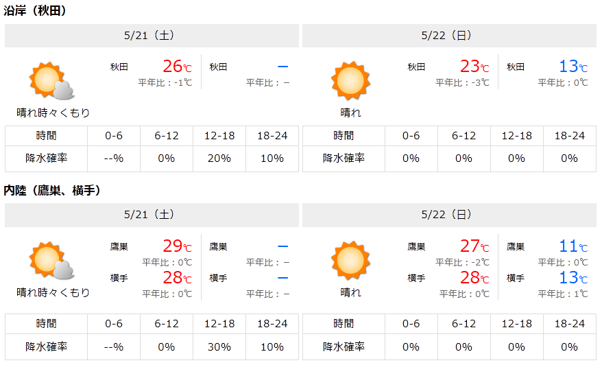秋田県内は、気持ちの良い晴れの天気が続いています。