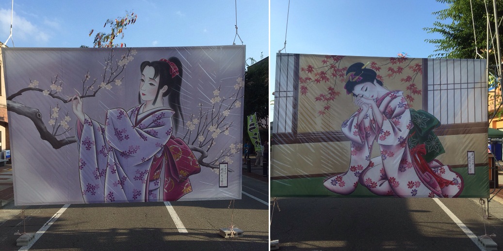 そして湯沢の七夕まつりは、笹竹の七夕飾りの他に浮世絵や美人画などが描かれた絵灯籠を飾る特徴があり、夜になると明かりが灯され一段とあでやかに。