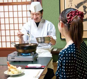 お部屋にて揚げたての天ぷらをお召し上がりいただけます。