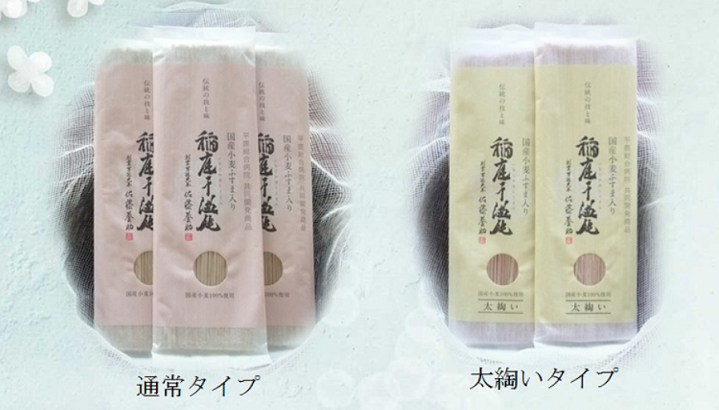 国産小麦ふすま入り 稲庭うどんを通常タイプ・太綯いタイプをセットで販売いたします!