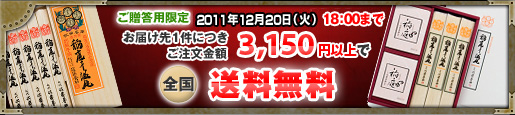 贈答用稲庭うどんに限り、お届け先1件につき3,150円以上のお買い上げで全国どこでも送料無料となります。※ご家庭用は対象外となりますのでご了承ください。