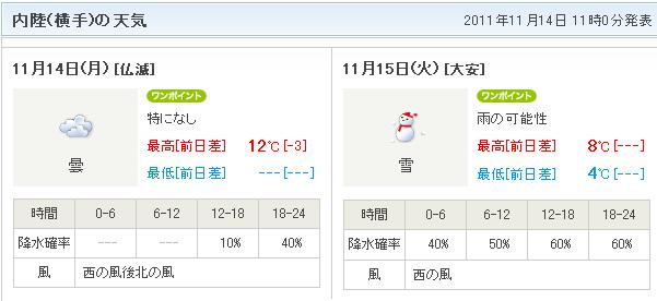 秋田県の天気予報にいよいよ雪だるまマークが登場しました。