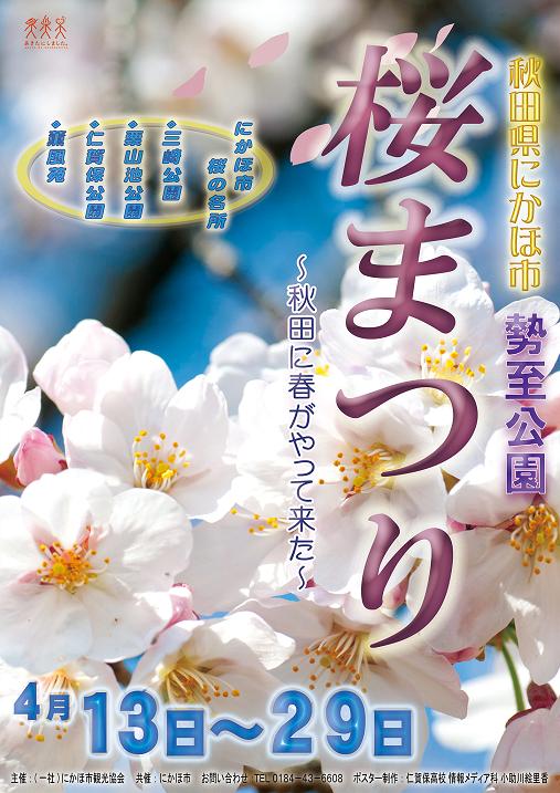 秋田でいちばん早く開花する勢至公園では今週末から観桜会がはじまります。「一般社団法人にかほ市観光協会」のfacebookのページがありました。こちらで開花状況を確認してから花見もできそうです。