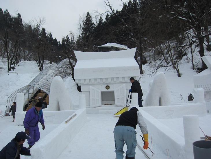 お堂っこ製作は、明日の午後からの審査に向けて、急ピッチで作業が進められていました。