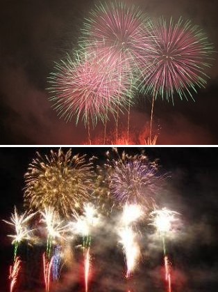 5000発の、連発・仕掛けなど多彩な花火が自然豊かな山あいの夜空を美しく染め、毎年10万人もの観客を魅了しています。