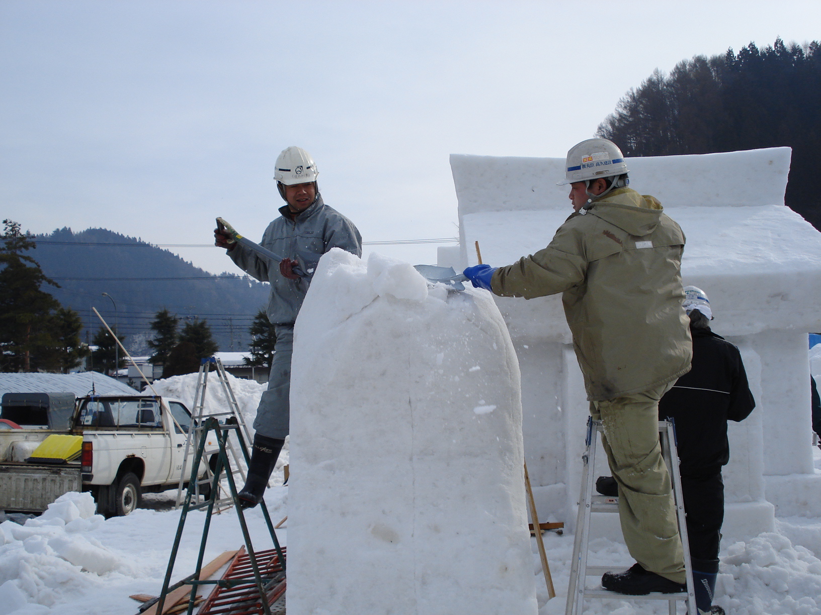 今日はお堂前の2体の犬っこの雪像作りに取り掛かっている様子を紹介します。