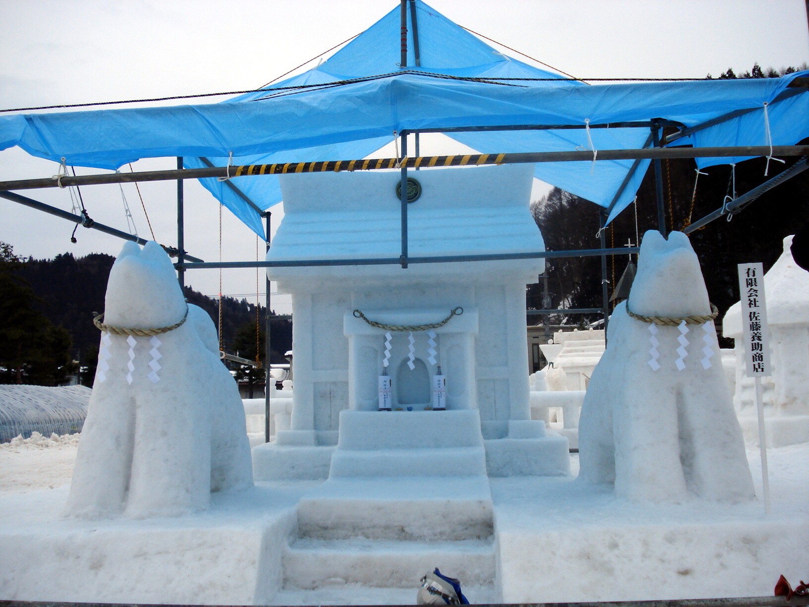 こちらが当社のお堂っこです。雪像が解けないようにまだシートで覆っています
