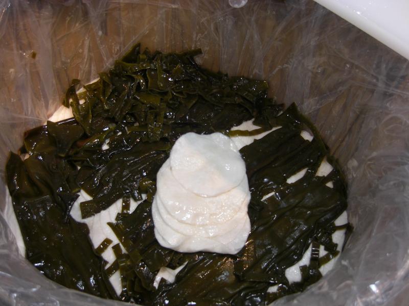 地元丹波産の聖護院かぶらと北海道の昆布・塩だけで漬けられた千枚漬の樽です。