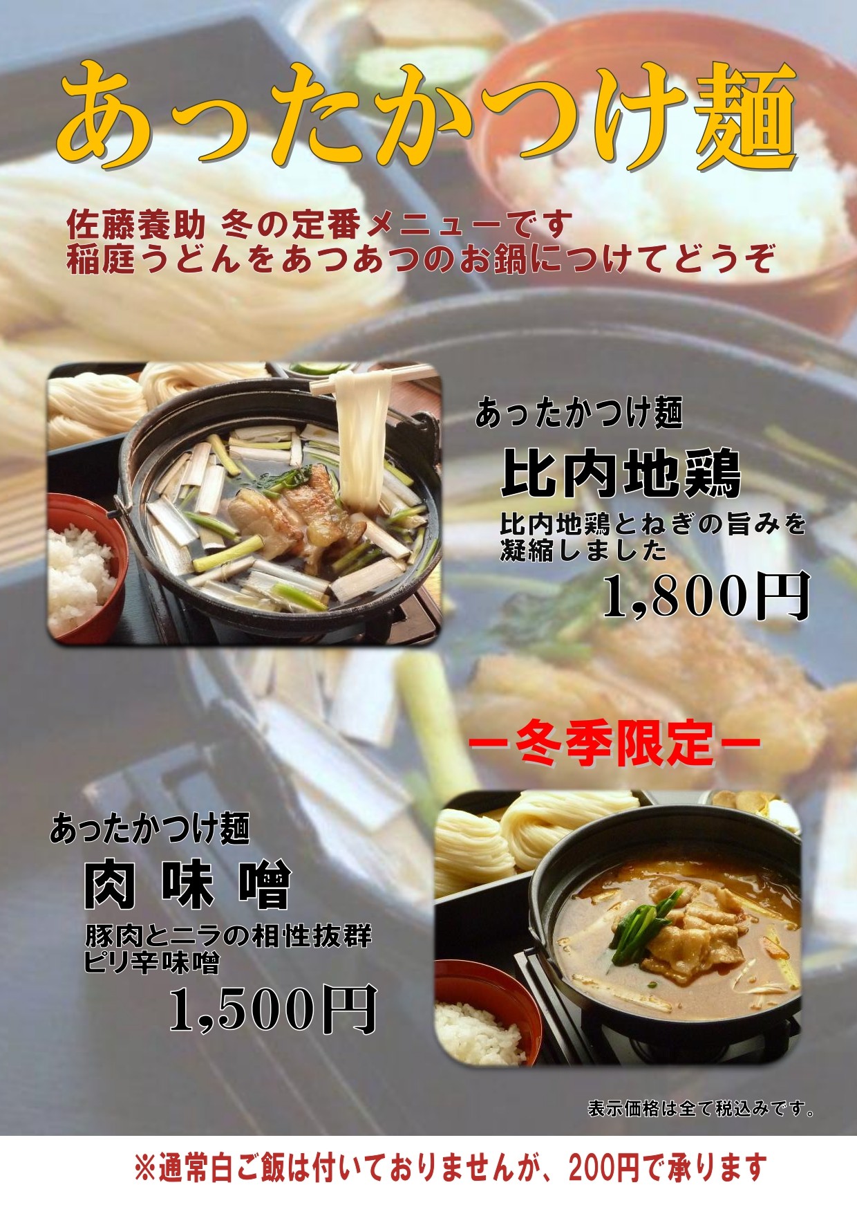 総本店では冬の定番メニュー「あったかつけ麵」が人気です