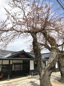 今朝、総本店別館前の桜の木を見たところ開花していました!