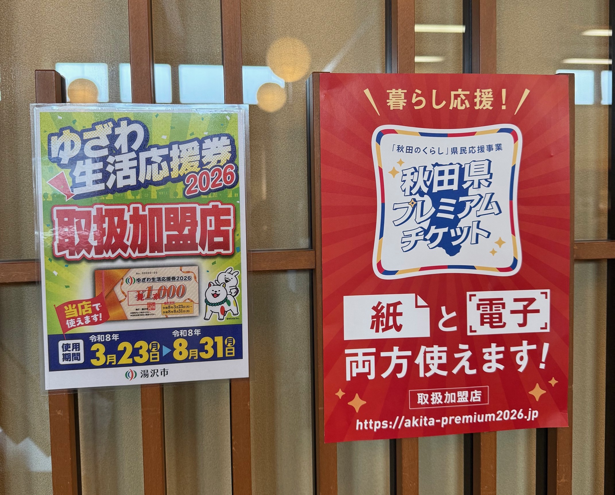 「秋田県プレミアム商品券」「ゆざわ生活応援券」ご利用いただけます